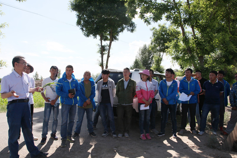 2017年張掖市多成農(nóng)業(yè)有限公司組織各部門員工對(duì)本年度生產(chǎn)基地長勢(shì)進(jìn)行觀摩,并邀請(qǐng)市、區(qū)種子部門專家對(duì)田間長勢(shì)、病蟲害進(jìn)行分析、查看。 苗期長勢(shì)喜人~期待豐收! 專家為公司員工講解玉米蟲害。 專家對(duì)玉米病害進(jìn)行分析。 |