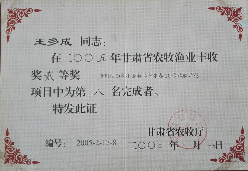 | 您現(xiàn)在的位置: 張掖市多成農(nóng)業(yè)有限公司 >> 資質(zhì)榮譽(yù) >> 個(gè)人榮譽(yù) >> 正文 |